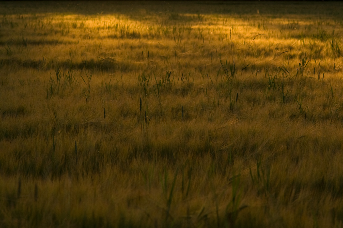 Day four. A field of grain in low evening light, shot with a longer focal length so the depth compresses and the bands of light and shadow stack on top of each other. There's no horizon, no context - just the texture of the grass in amber and dark gold. By this point in the week, I was starting to notice that the best light only lasts about fifteen minutes. You learn to be in position before it arrives.